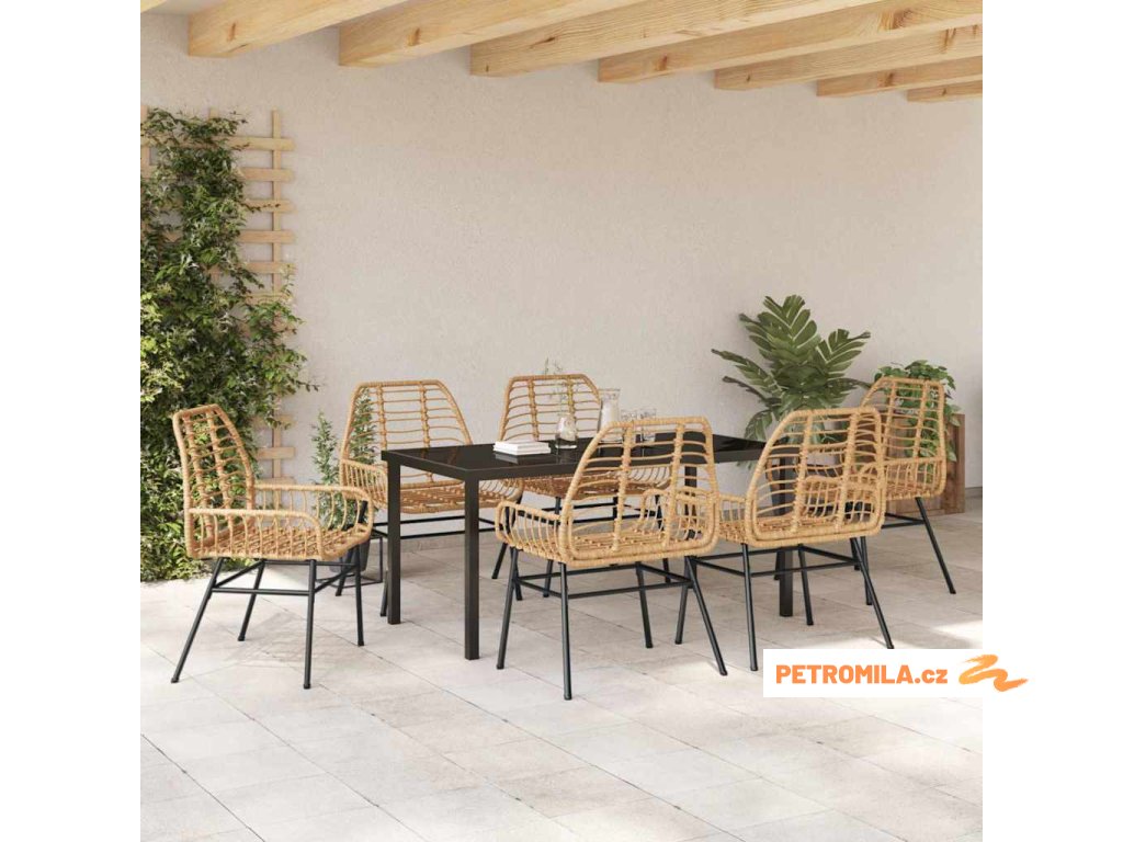 Zahradní jídelní souprava 7 pcs Hnědá polyratan