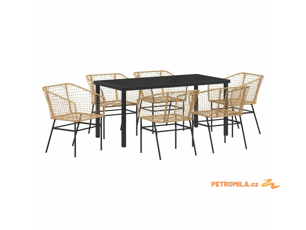 Zahradní jídelní souprava 7 pcs Hnědá polyratan