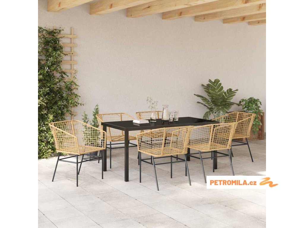 Zahradní jídelní souprava s polštářem 7 pcs Béžová Poly ratan