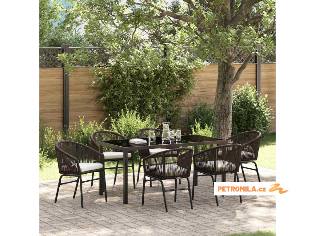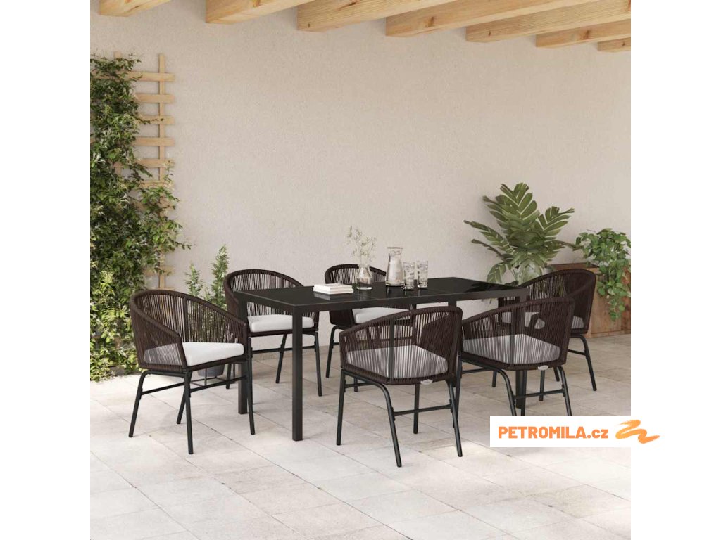 Zahradní jídelní souprava 7 pcs Hnědá Práškově lakovaná ocel