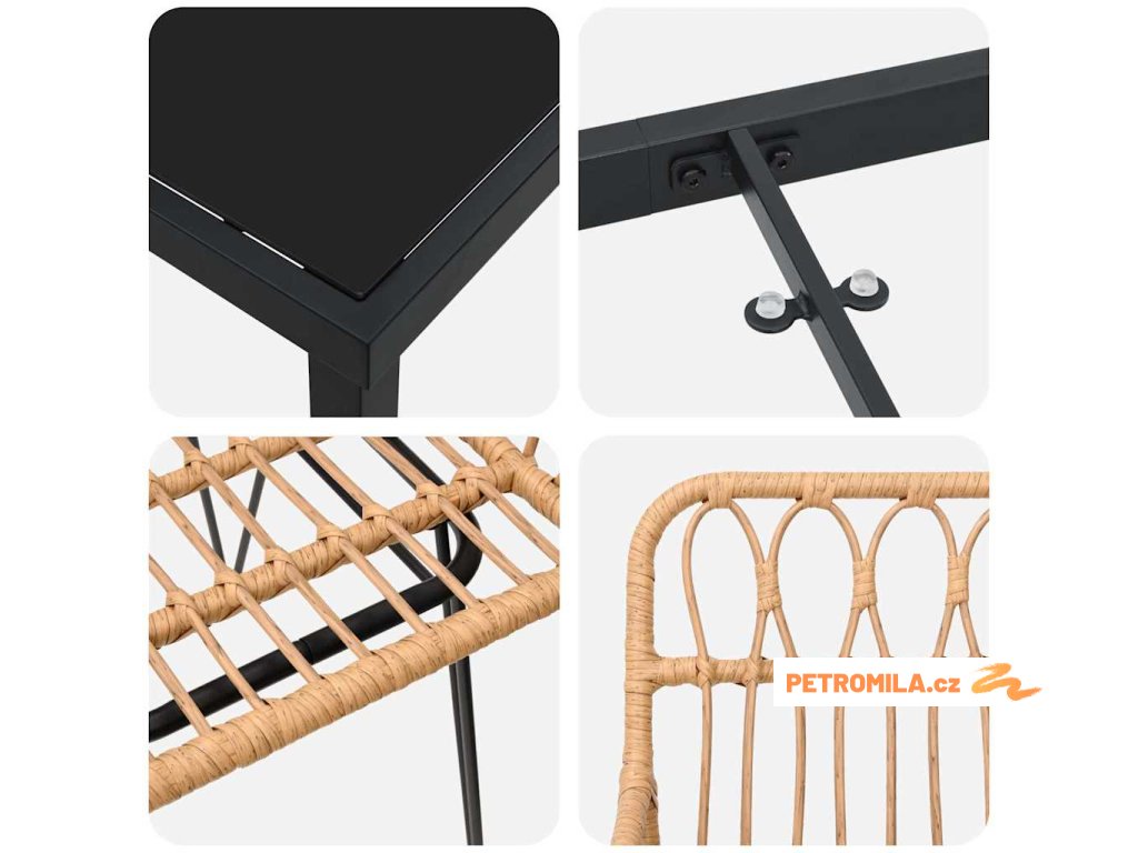 - Prémiové materiály Zahradní jídelna vyrobená z poly ratanu na sedáky a opěrky je odolná a pohodlná. Ocelový rám z práškově lakovaného kovu zajišťuje robustnost a spolehlivé použití venku. Materiály byly vybrány pro dlouhou životnost, což vám dává klid na duši při venkovním užívání.