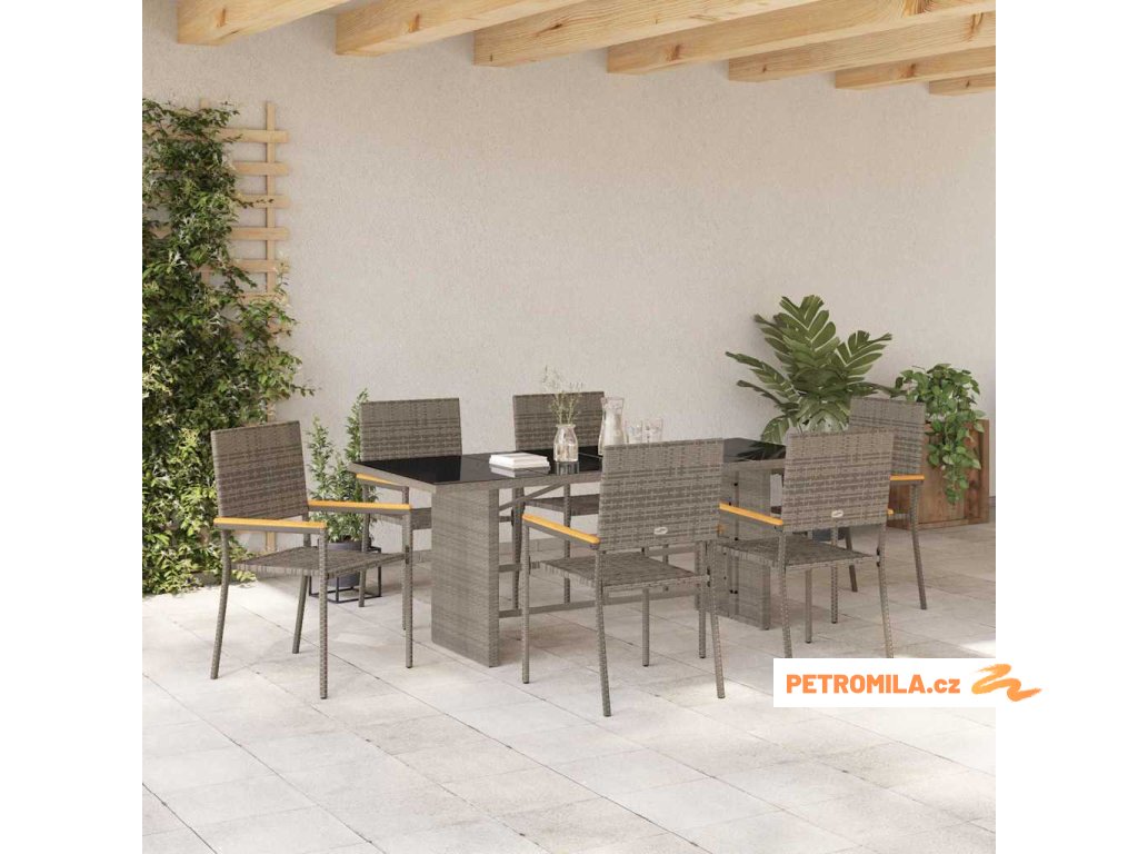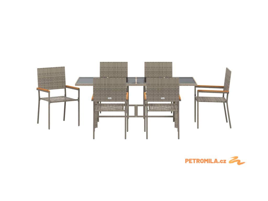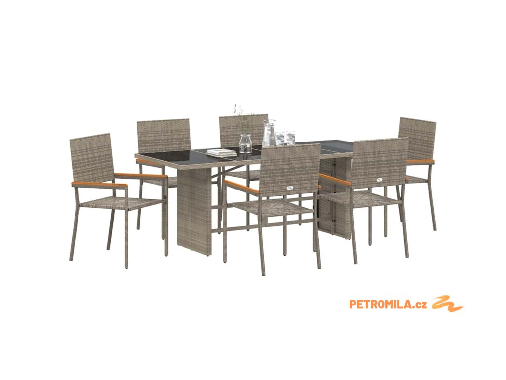 Zahradní jídelní souprava 7 pcs Šedá 190 x 80 x 75 cm polyratan
