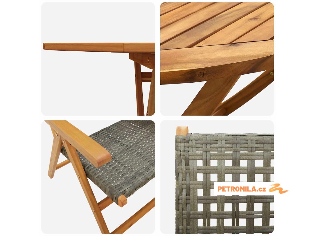 - Funkce/Design: Tato souprava má nastavitelné sklápěcí mechanismy. Díky tomu je flexibilní volba pro místa, kde se hodí skladování. Snadno se sklopí pro transport nebo při ukládání, když ji nepoužíváš, a její moderní vzhled je fajn bonus.