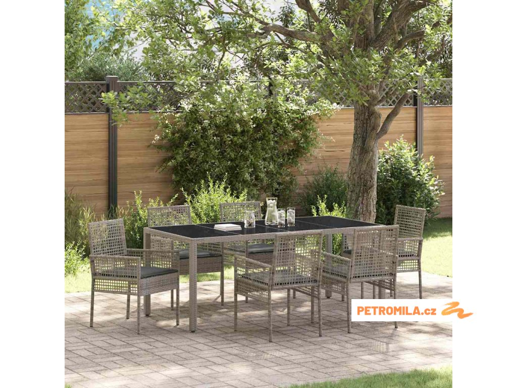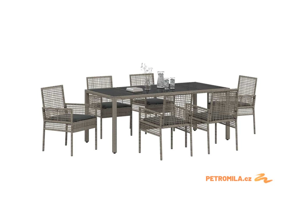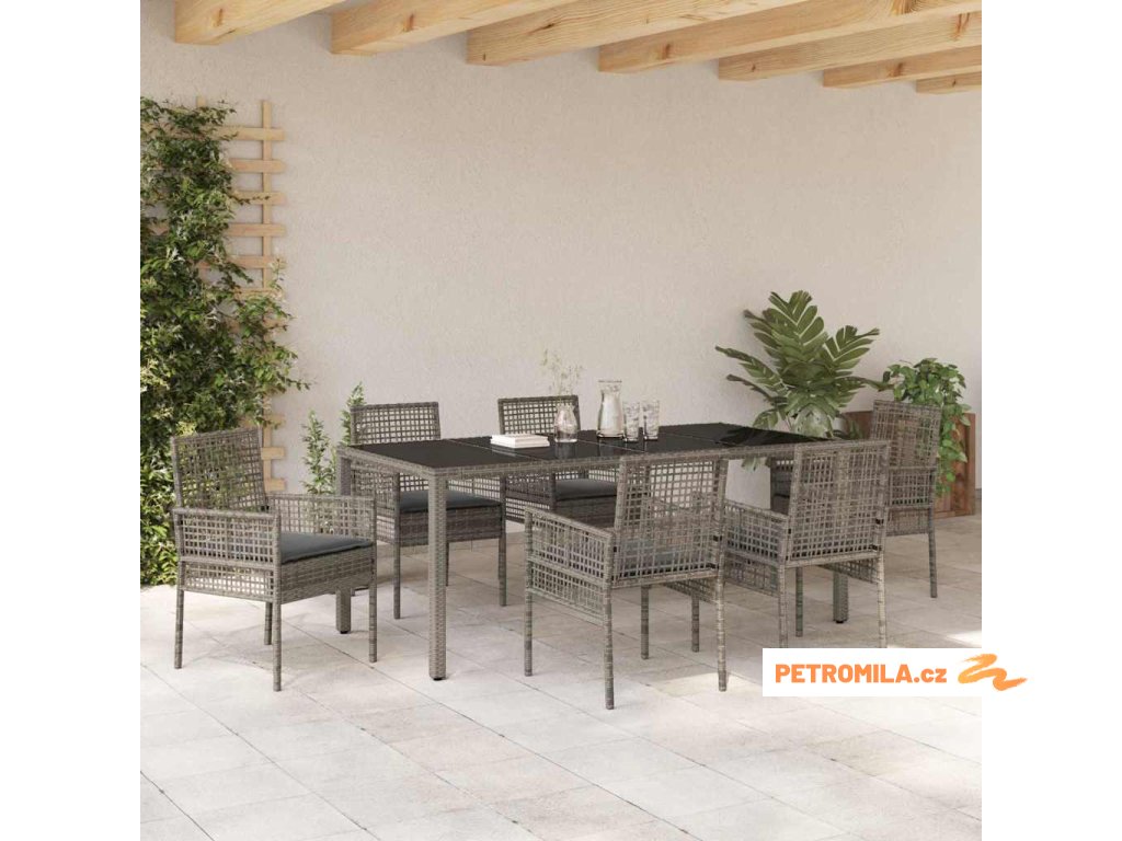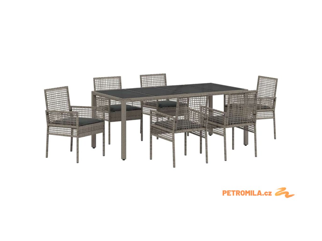 Zahradní jídelní souprava 7 pcs Šedá Poly ratan