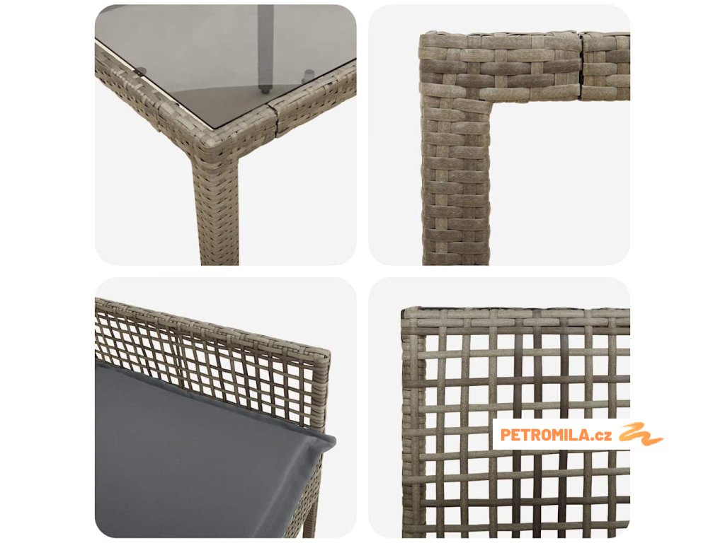 - Vysoce kvalitní poly ratan: Tato souprava je vyrobená z odolného poly ratanu, který zvládá různý počasí a každodenní používání. Její tkaný vzhled dodává chic atmosféru, která se hodí do každé zahrady a dává vám pohodlí díky chytrému designu.