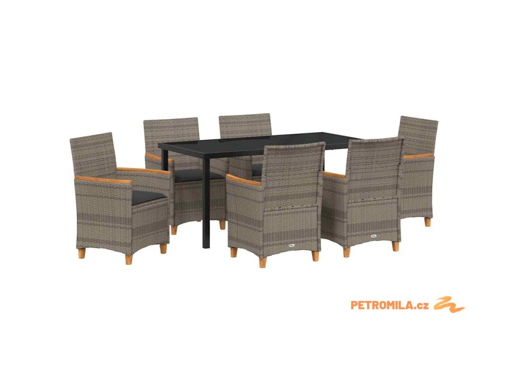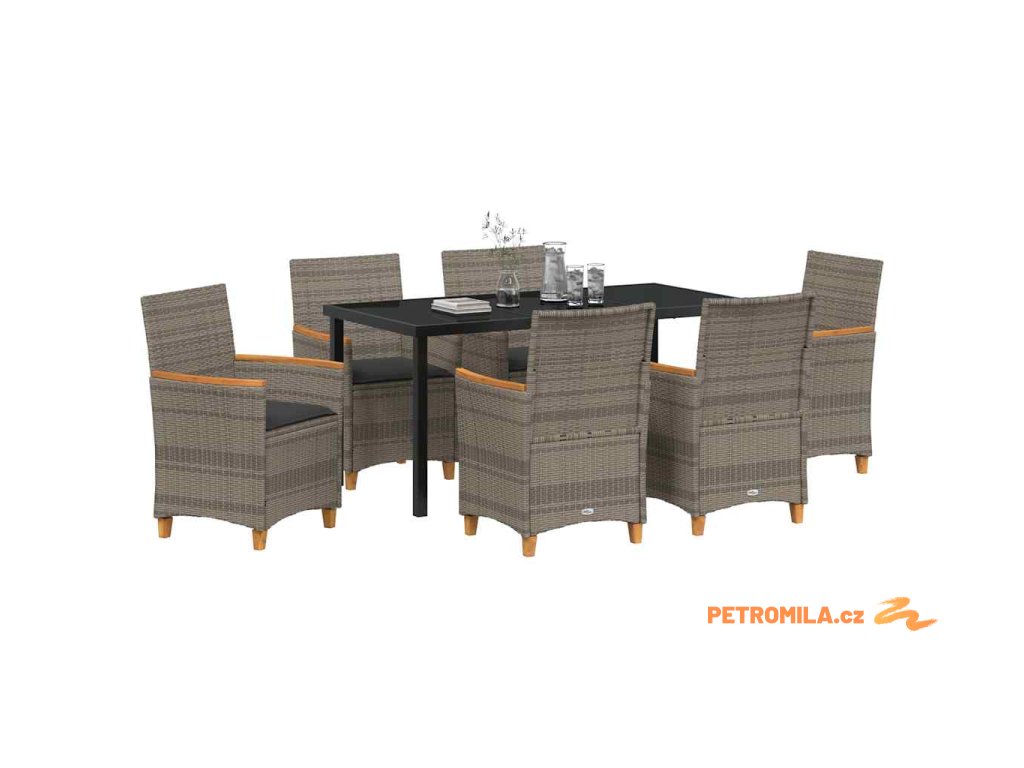 Zahradní jídelní souprava 7 pcs Šedá polyratan