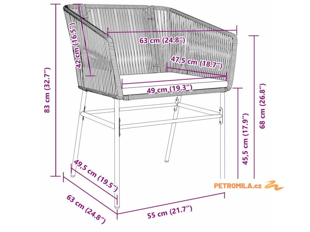 - 2 x Zahradní křeslo: 63 x 55 x 83 cm (DŠV)
