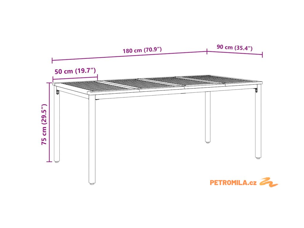 - Celkové rozměry: 180 x 90 x 75 cm (D x Š x V)