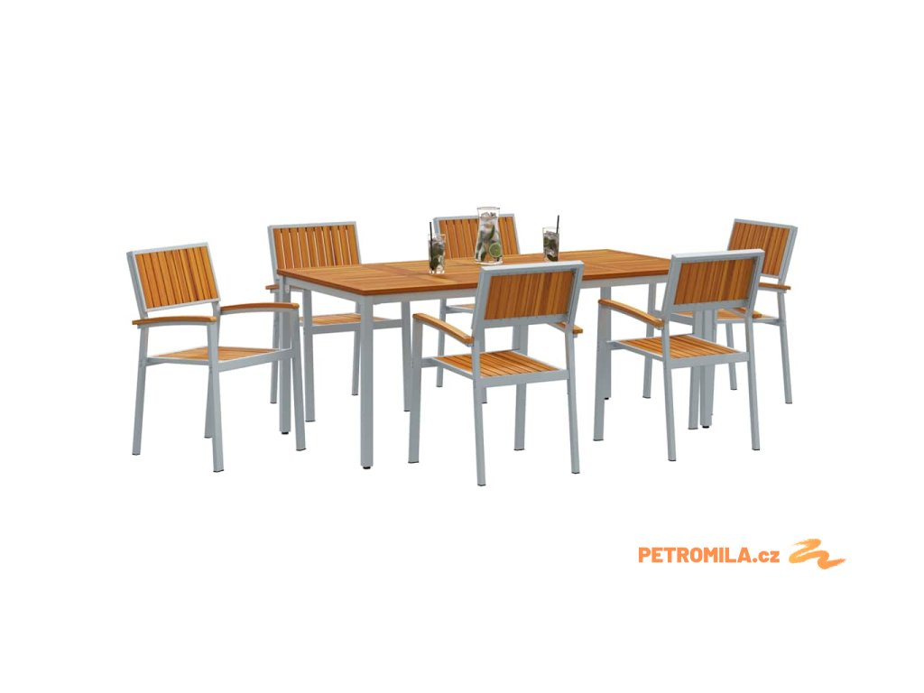 - Součásti: Set obsahuje prostorný stůl a kvalitní židle, z nichž každá má akáciové opěrky. Jsou navržené pro pohodlí, takže si tvoji hosté můžou dát nohy nahoru a užívat si pokecání.