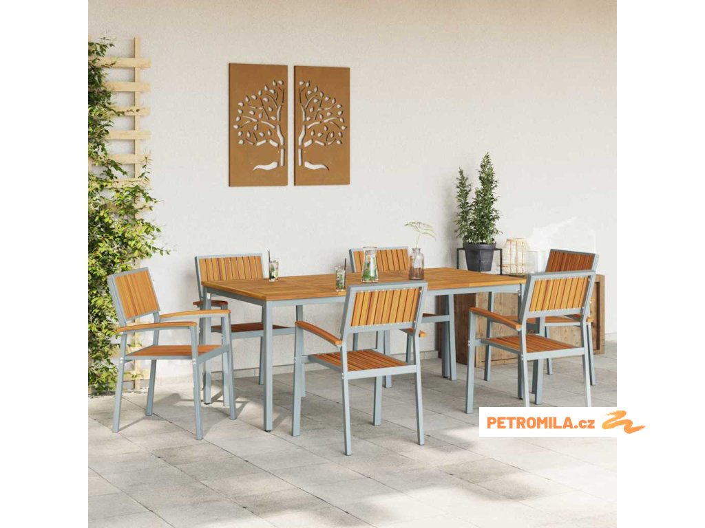 - Materiály: Super kombinace masivního akáciového dřeva a silné oceli, suitable for co vydrží. Akácie má krásnou texturu a je silný, skvěle se doplňuje se solidními ocelovými rámy – ideální do každého počasí.