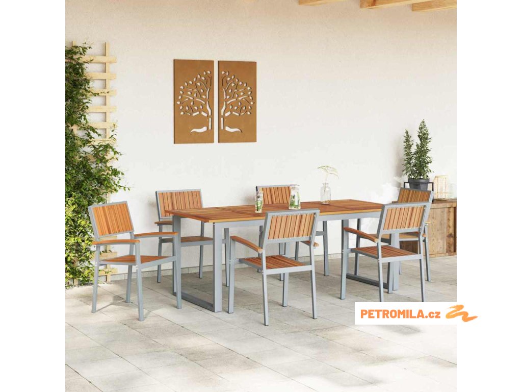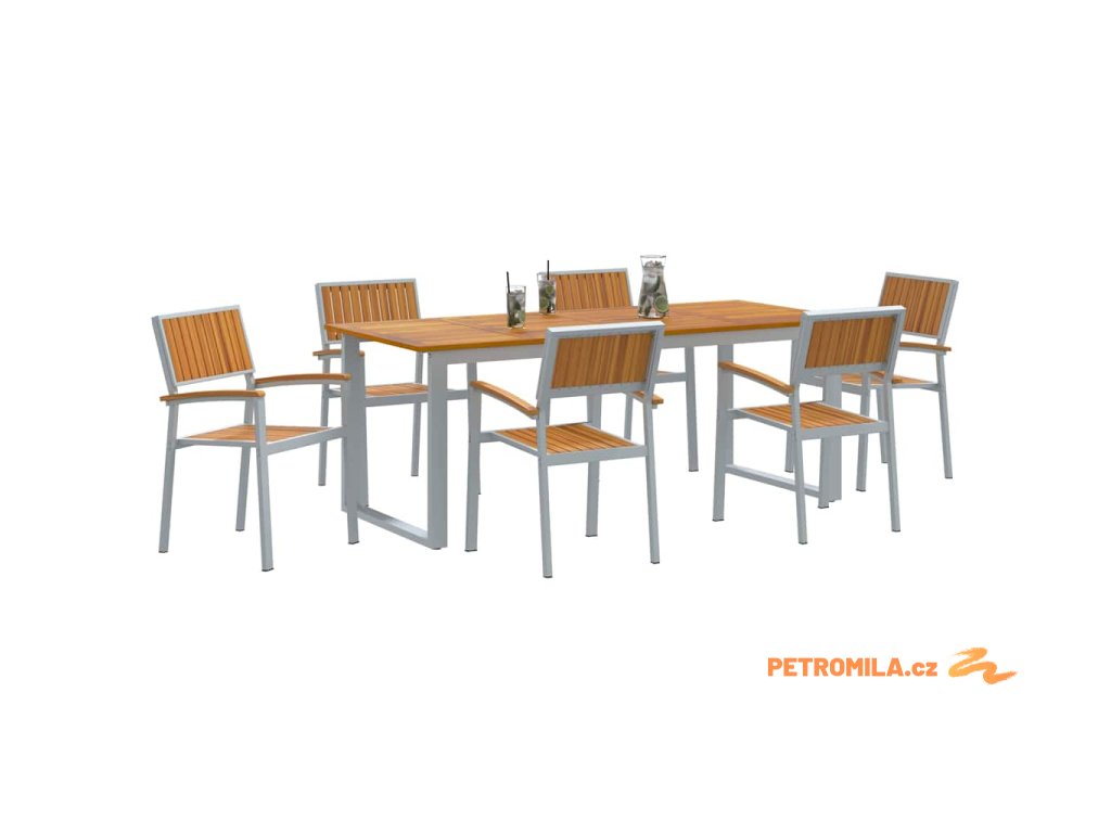 - Součásti: S pevným masivním akáciovým dřevem na opěrkách je tahle souprava zaměřená na komfort a odolnost. Ocelové nohy ji drží stabilní a bez problémů zvládá časté používání. Povrch, sezení a rám z masivního akáciového dřeva vytvářejí hezký a stylový vzhled.