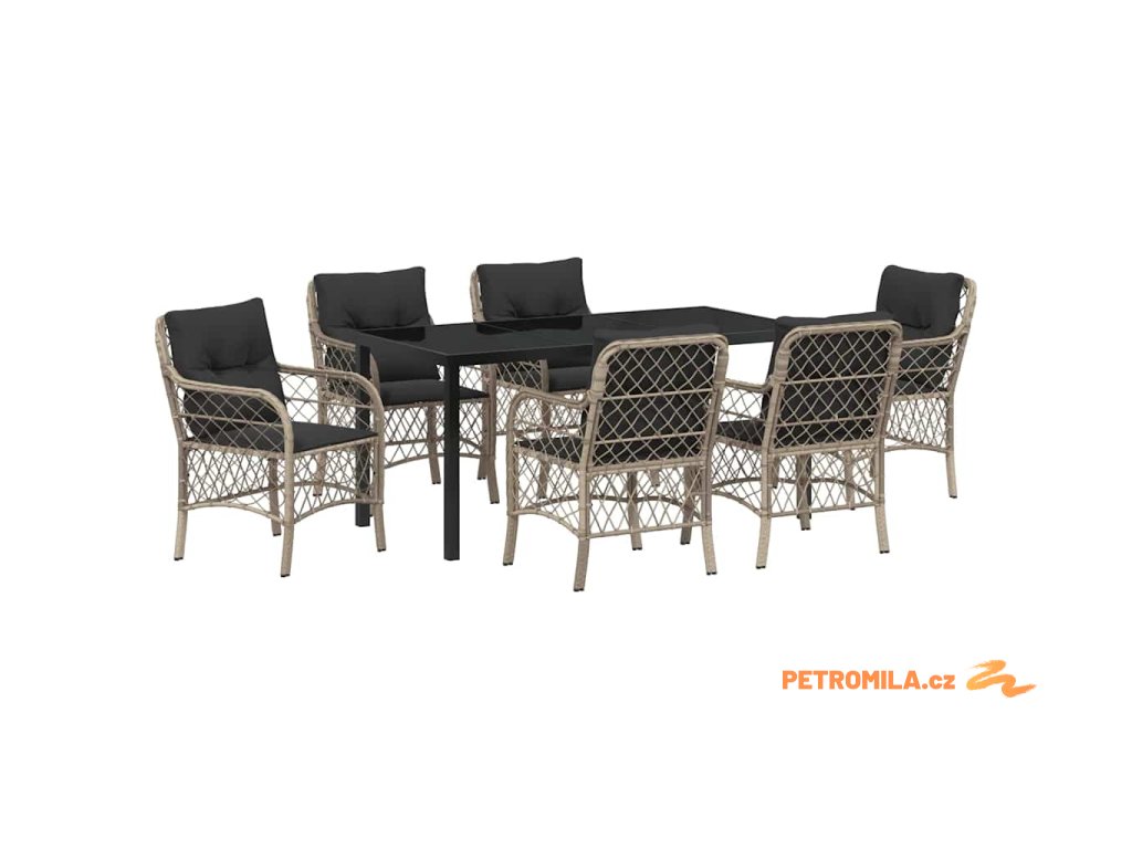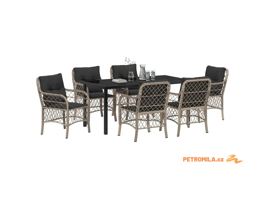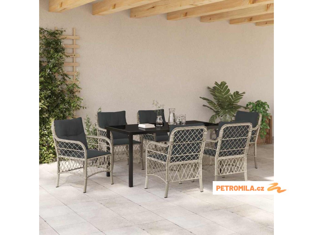 Zahradní jídelní souprava 7 pcs Světle šedá Poly ratan