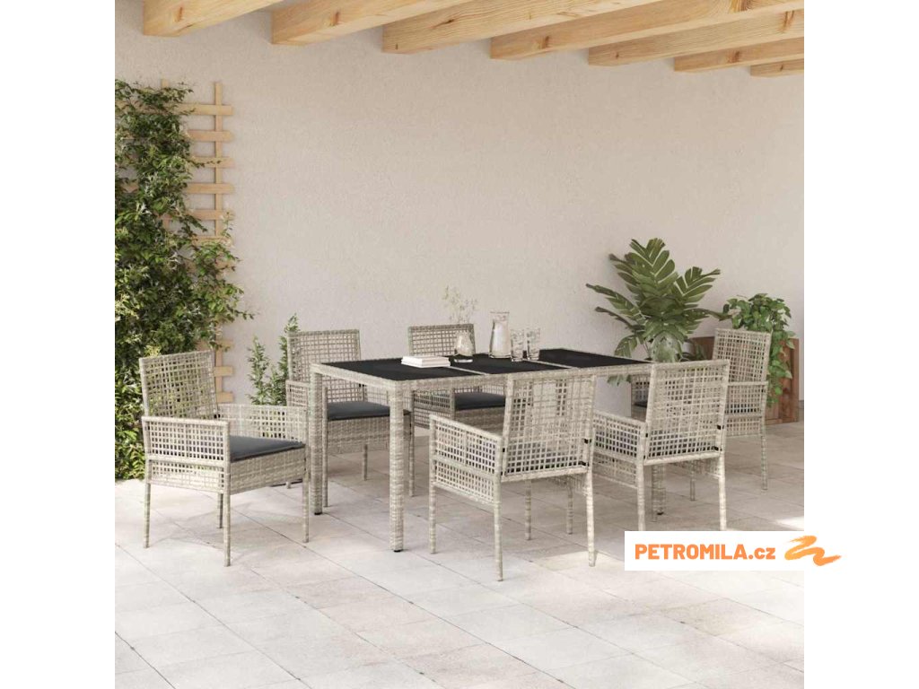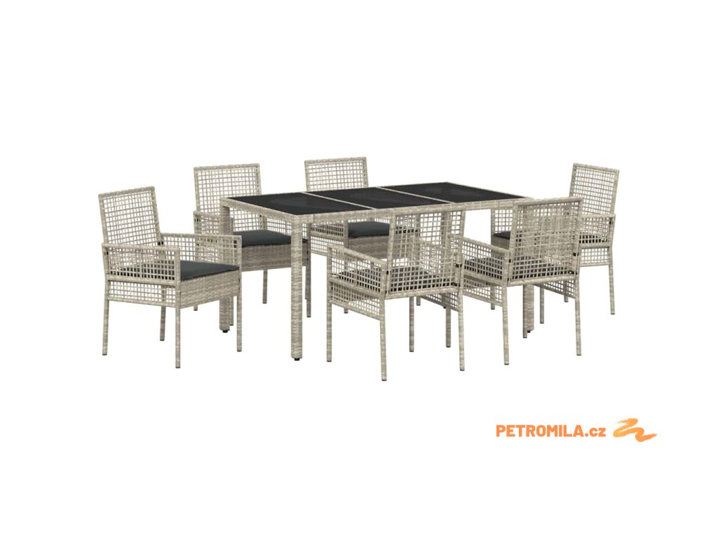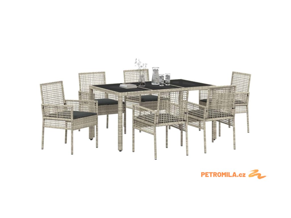 Zahradní jídelní souprava 7 pcs Světle šedá Poly ratan