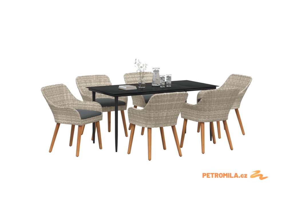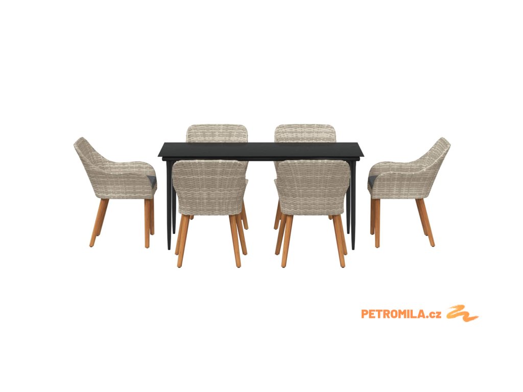 Zahradní jídelní souprava 7 pcs Světle šedá polyratan