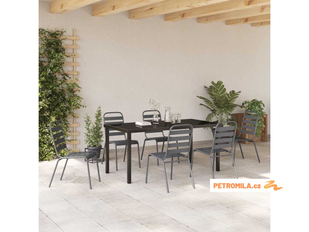 Zahradní jídelní souprava 7 pcs Tmavě šedá Ocel