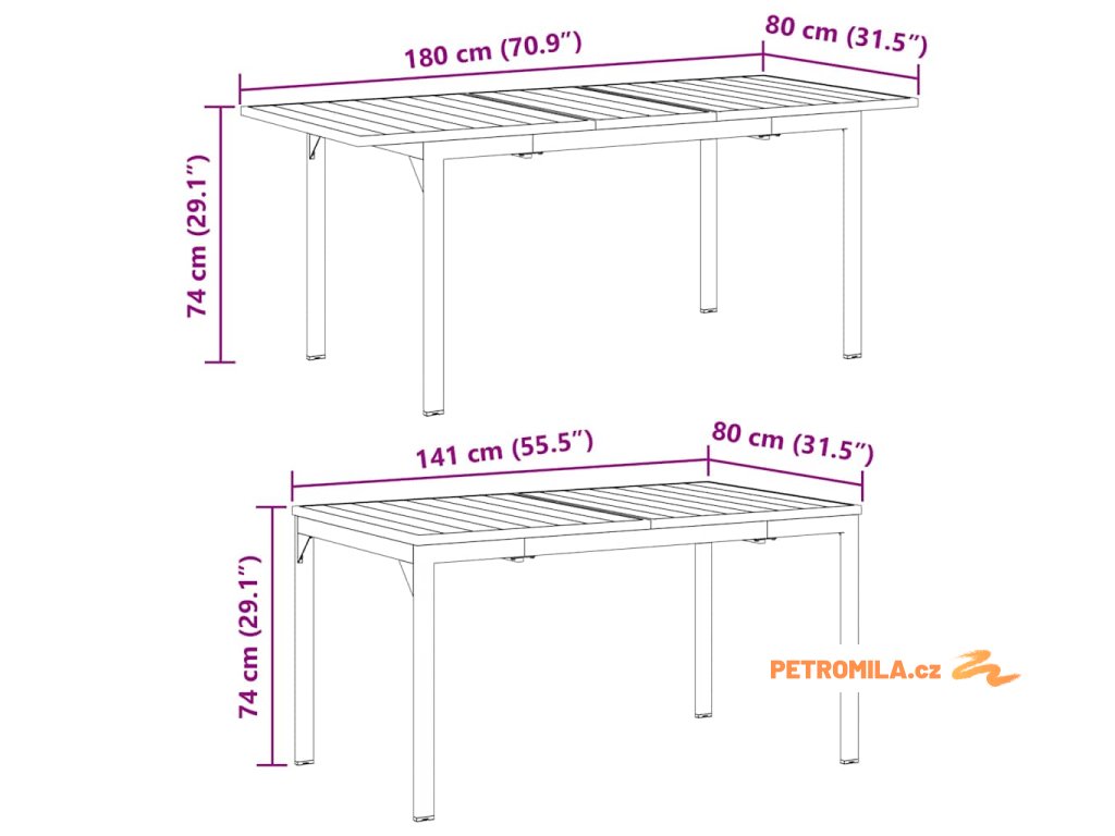 - 1 x Rozkládací zahradní stůl: 180 x 80 x 74 cm (DxŠxV)