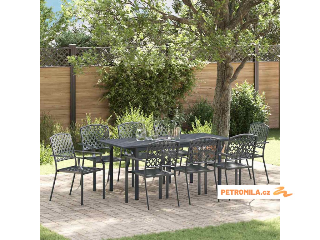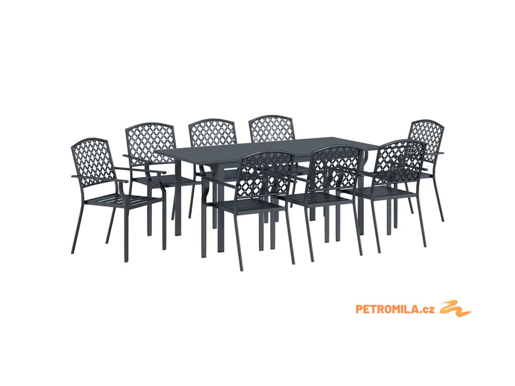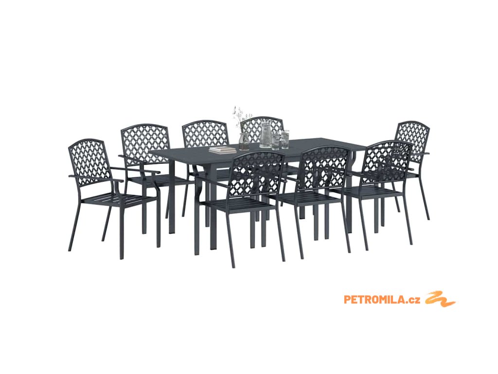 Zahradní jídelní souprava 9 pcs Antracit Práškově lakovaná ocel