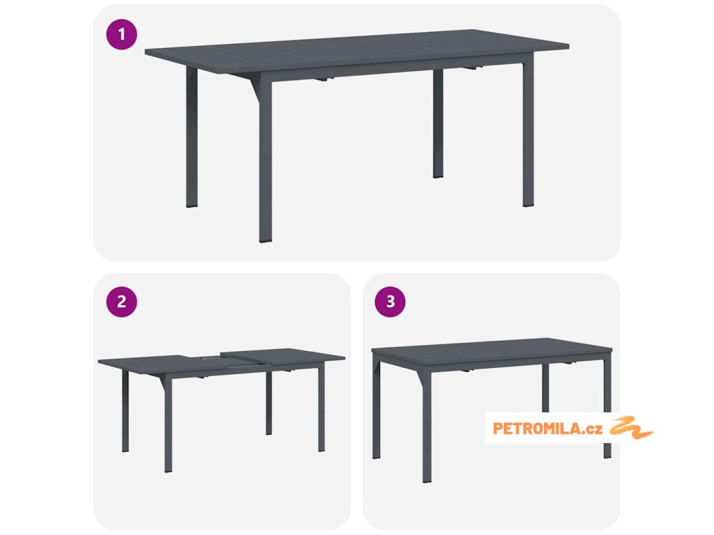 Vstupte do světa luxusního venkovního stolování s naším moderním zahradním jídelním setem, který je ideální jak na pohodové letní obědy, tak na velké večerní oslavy. Jeho štíhlý a funkční styl zve k veselé atmosféře, zajímavým rozhovorům a pohodovému odpočinku na sluníčku. Představte si, jak umístíte tento stylový kousek na terasu; jeho antracitové barvy se skvěle hodí k přírodě a tvoří elegantní středobod vašeho venkovního prostoru. Proměňte svůj zahradní prostor na krásně zařízenou jídelnu, ideální pro rodinné oslavy nebo víkendové brunch.