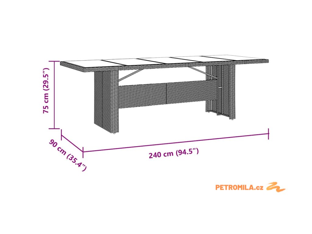 - Celkové rozměry: 240 x 90 x 75 cm (Š x D x V)