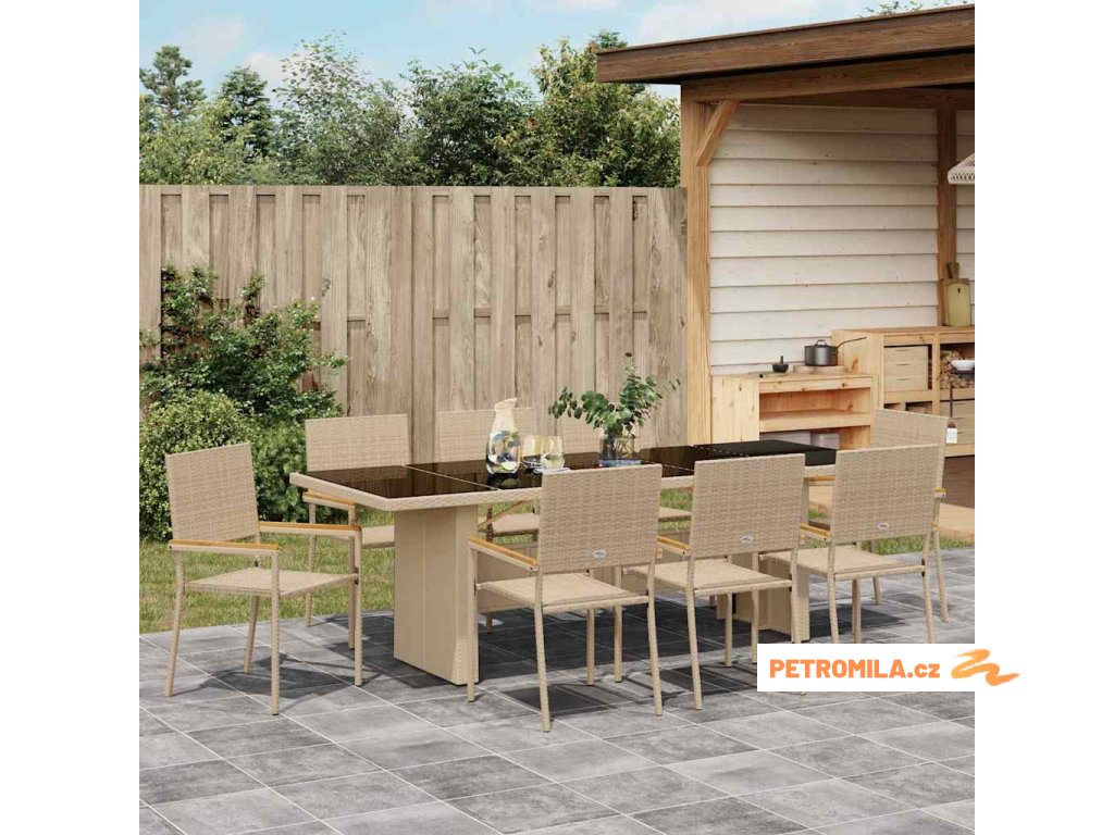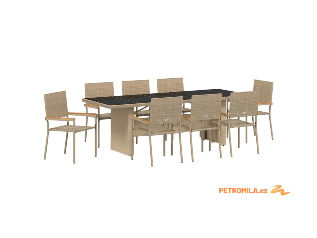 Zahradní jídelní souprava 9 pcs Béžová Poly ratan
