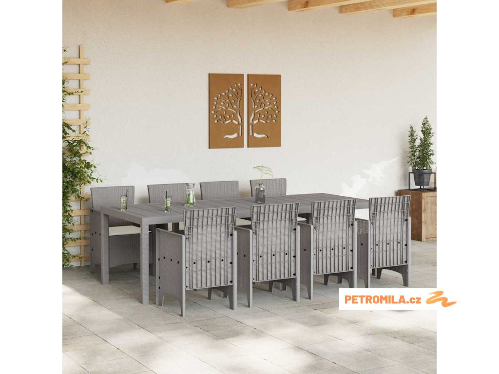 - Univerzální venkovní využití Perfektní pro zahrady a terasy, tento set se skvěle přizpůsobí různým venkovním kontextům. Jeho elegantní design vylepšuje jakýkoli prostor, což ho činí vhodným pro stolování, socializaci a oslavu výjimečných příležitostí. Bez problémů přecházející od běžného denního jídla po útulné večerní sezení, slouží jako středobod jakéhokoli shromáždění.
