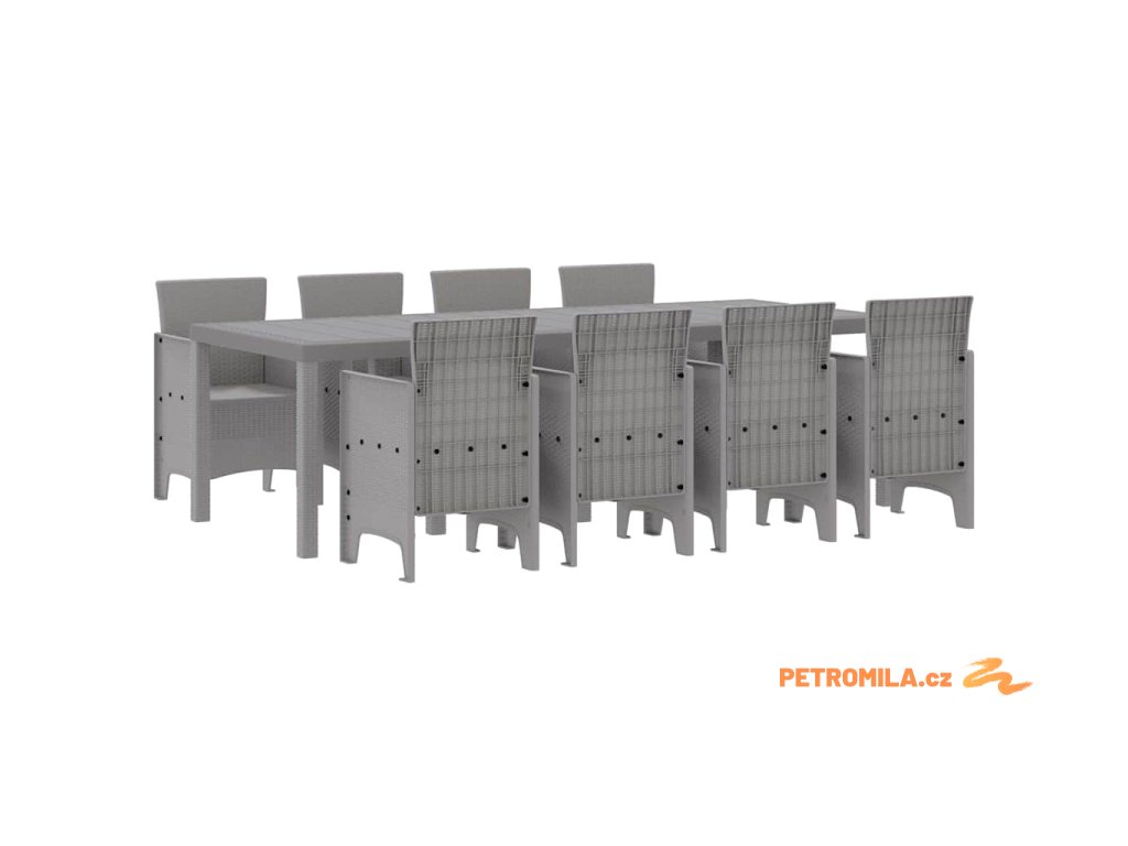 Tento elegantní moderní zahradní jídelní set spojuje elegantní současný design s praktičností, což ho činí dokonalým doplňkem venkovních prostor. Ideální pro stolování venku během letních měsíců, jeho obdélníková konfigurace podporuje rodinná shromáždění a elegantní večeře. Se zaměřením na jednoduchost a funkčnost tento set kombinuje čisté linie a minimální ozdobnost, aby vytvořil klidné venkovní prostředí.