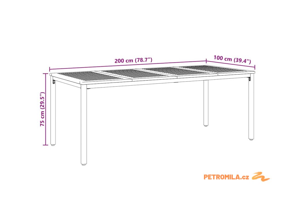 - Celkové rozměry: 200 x 90 x 75 cm (D x Š x V)
