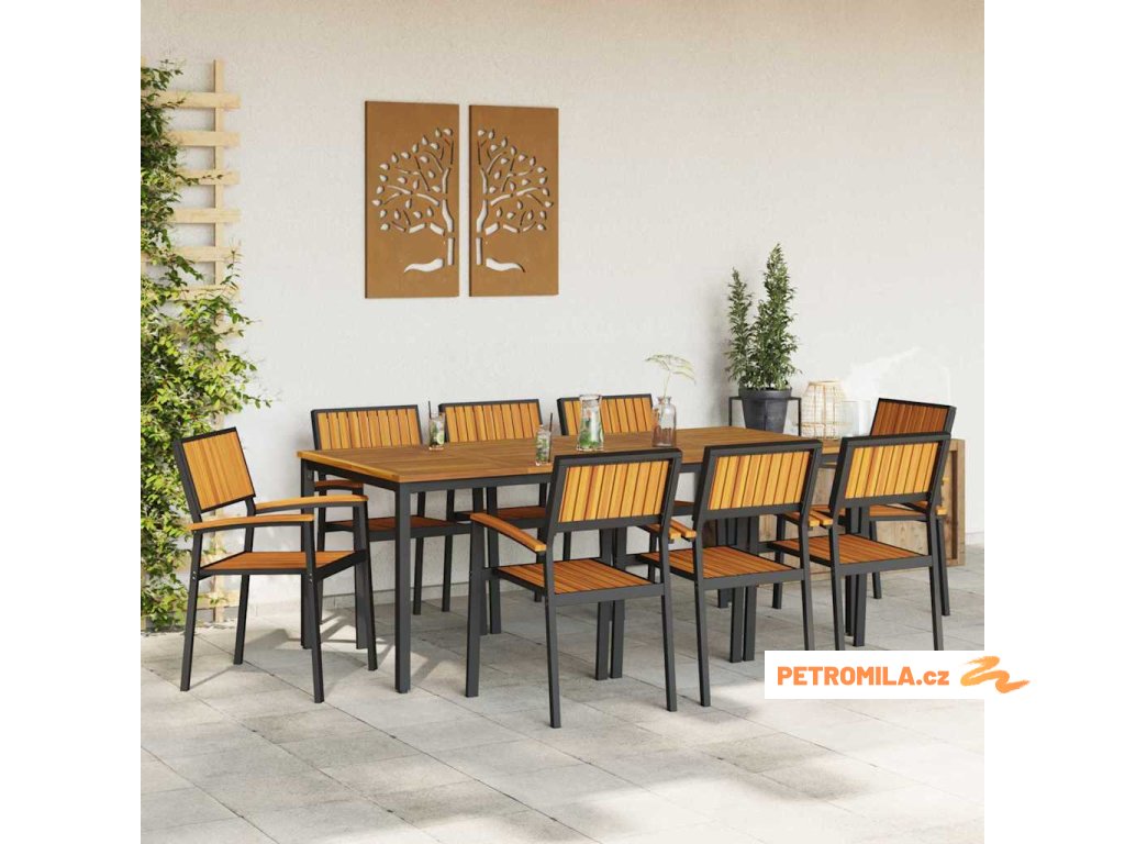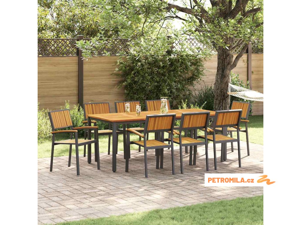 - Materiály: Super kombinace masivního akáciového dřeva a silné oceli, suitable for co vydrží. Akácie má krásnou texturu a je silný, skvěle se doplňuje se solidními ocelovými rámy – ideální do každého počasí.