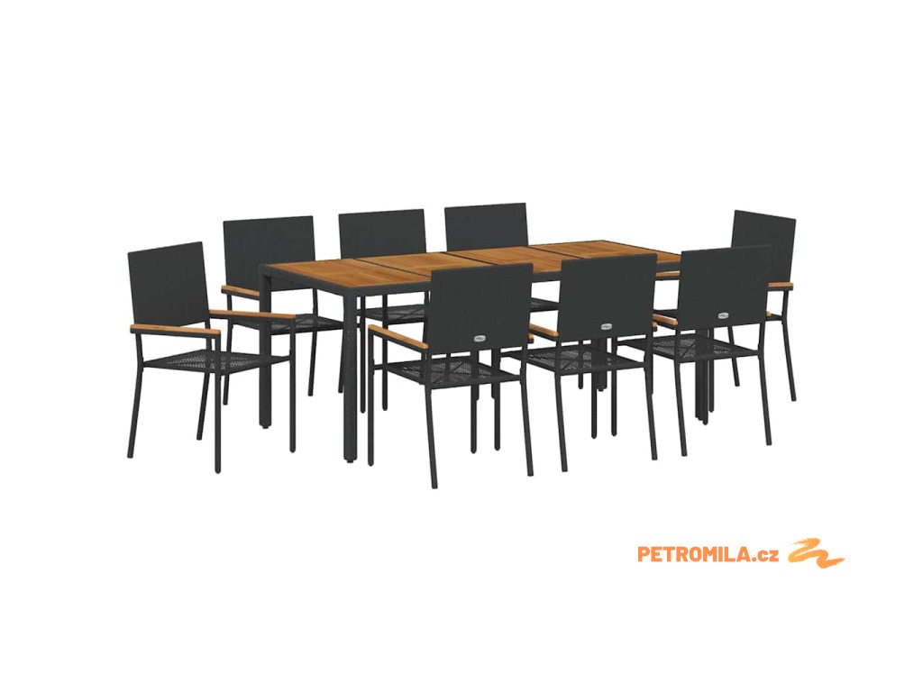Zahradní jídelní souprava 9 pcs Černá a hnědá polyratan