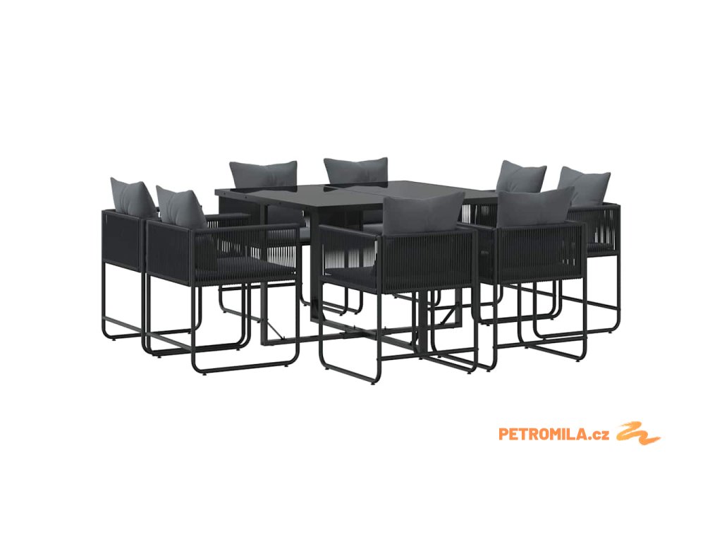 Zahradní jídelní souprava 9 pcs Černá Ocel