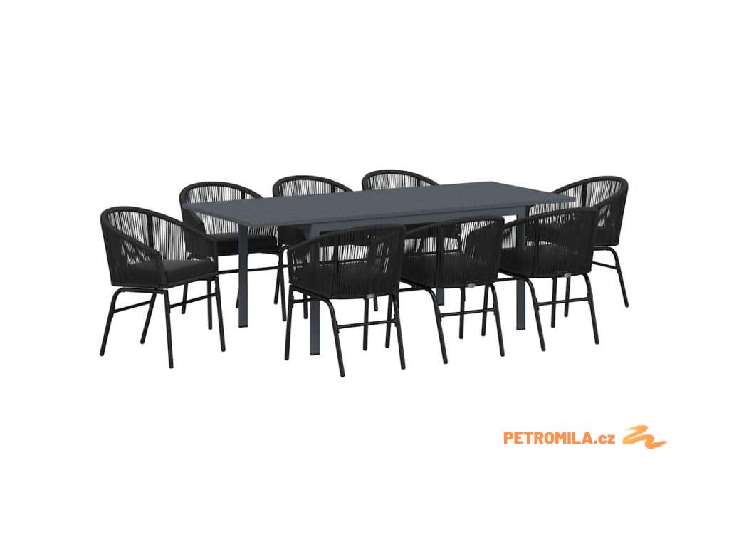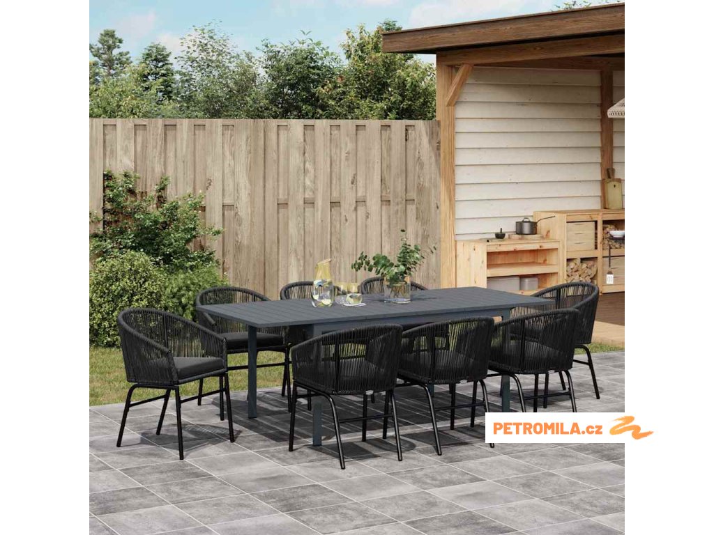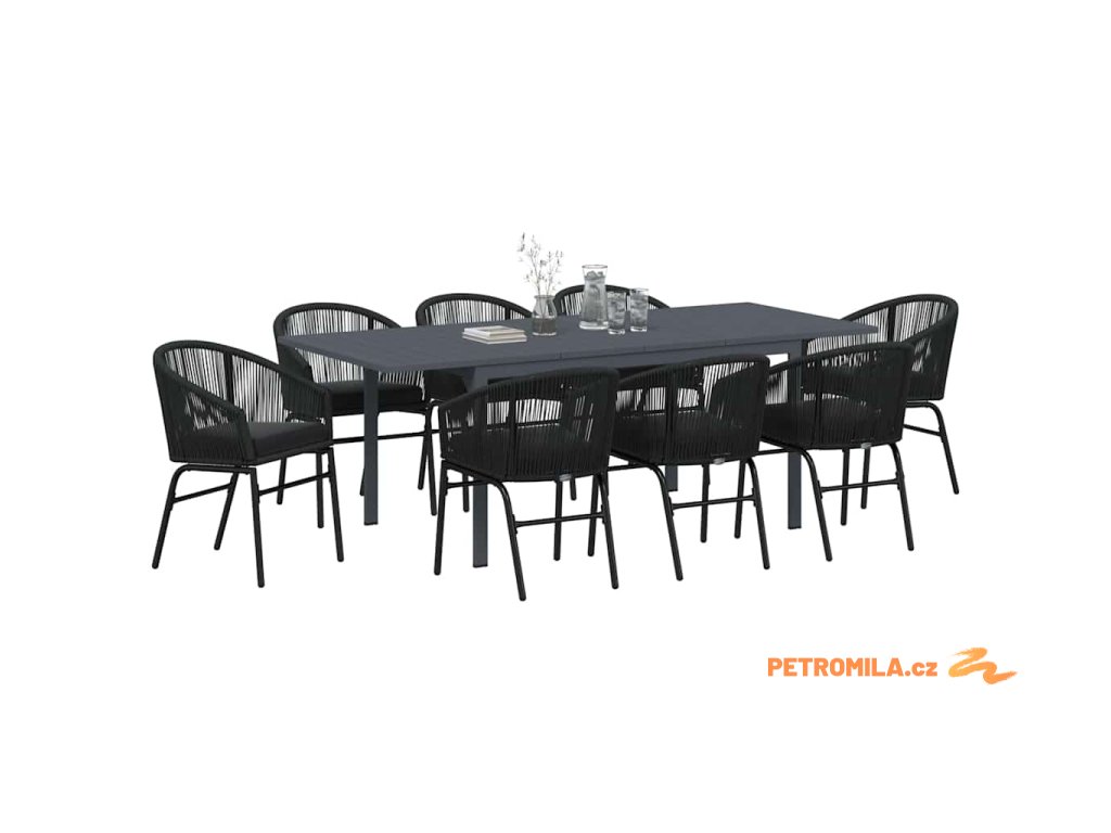 Zahradní jídelní souprava 9 pcs Černá Poly ratan