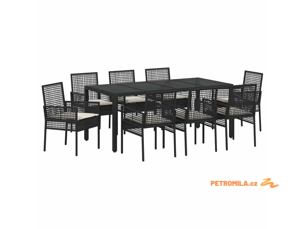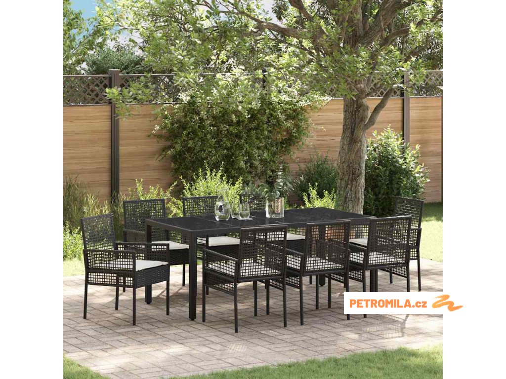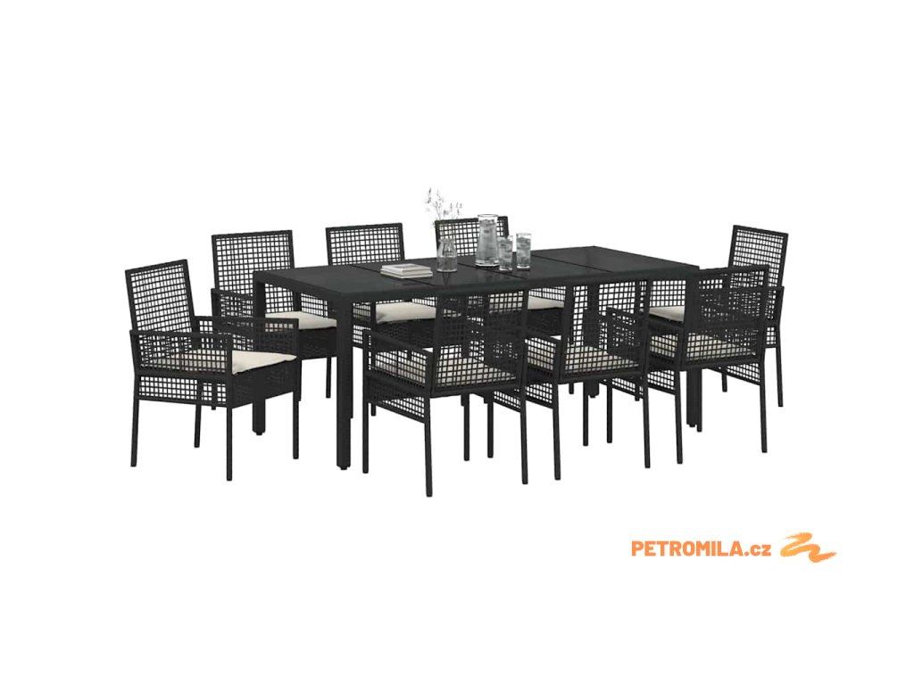 Zahradní jídelní souprava 9 pcs Černá polyratan
