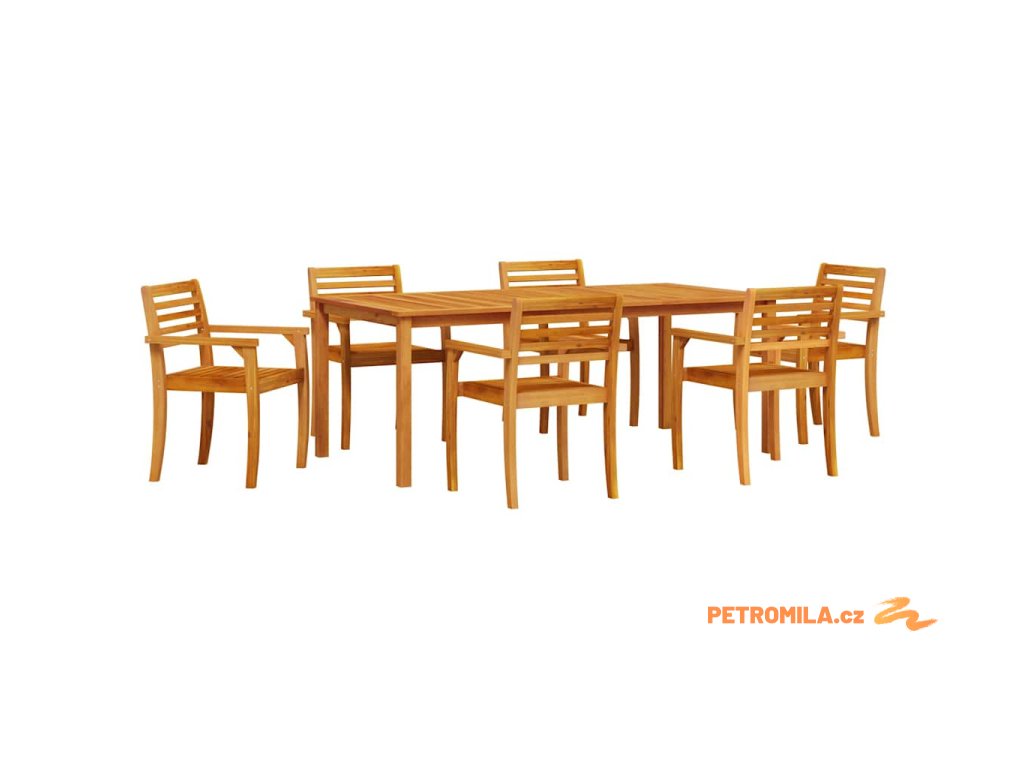 - Kvalitní provedení: Set je vyrobený z masivního akáciového dřeva, což zaručuje jeho trvanlivost a sílu. Díky své tvrdosti a odolnosti proti opotřebení vydrží ke všem změnám počasí ve vaší zahradě.