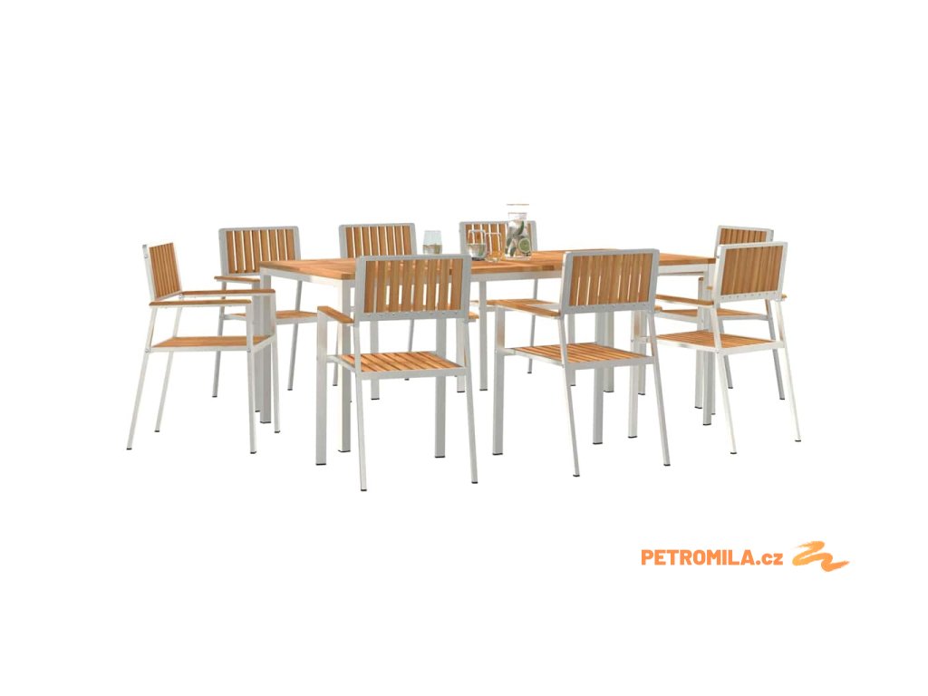 - Rám z nerezové oceli: Tento zahradní jídelní set má pevný rám z nerezové oceli, což zajišťuje stabilitu a odolnost venku. Materiál zvládá vlhké podmínky, takže je to váš spolehlivý parťák pro venkovní jídla. Nerezová ocel vypadá skvěle a zároveň je funkční a stylová.