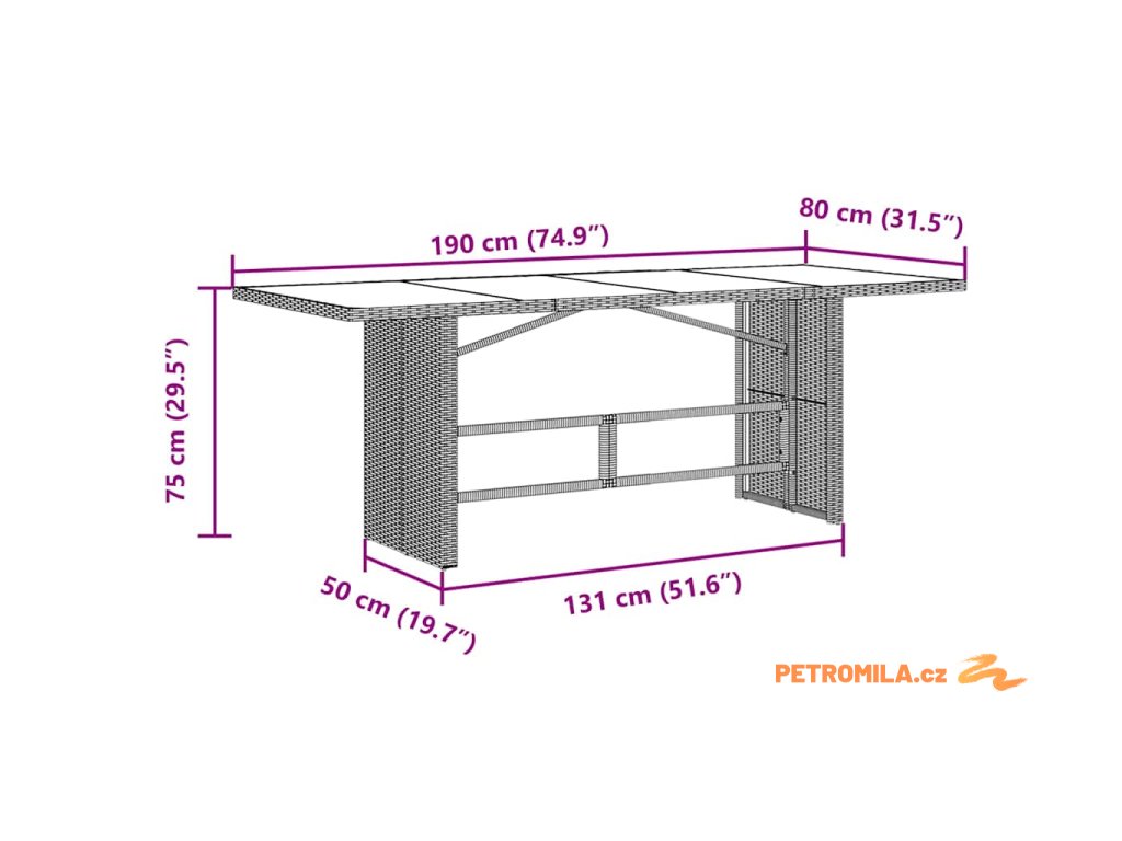 - Skleněná Povrchová Úprava Tvrzené sklo nahoře dává noblesní dotek a je praktické. Snadno se čistí a dlouho si uchovává jasnost. Tenhle odolný materiál odolává škrábancům a snese teplo, takže je perfektní na všechna venkovní jídla.
