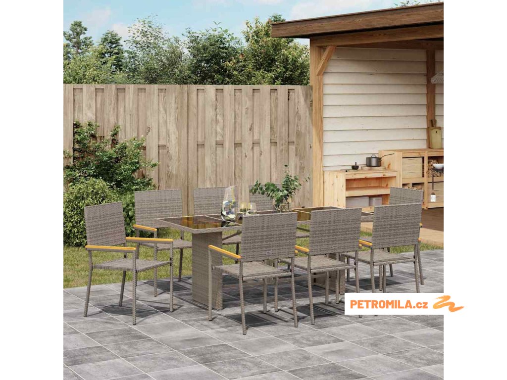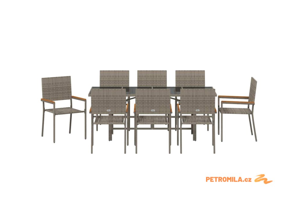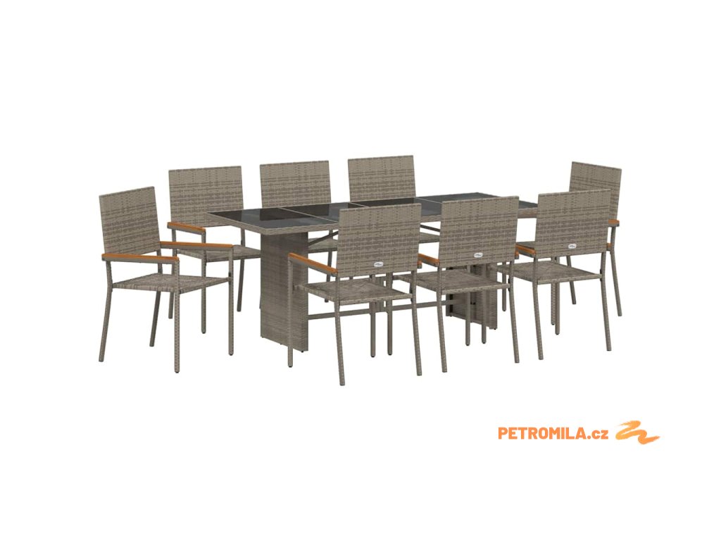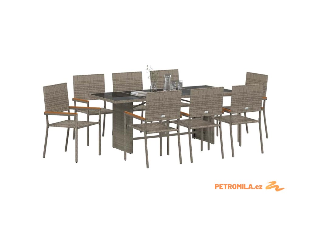 Zahradní jídelní souprava 9 pcs Šedá 190 x 80 x 75 cm polyratan