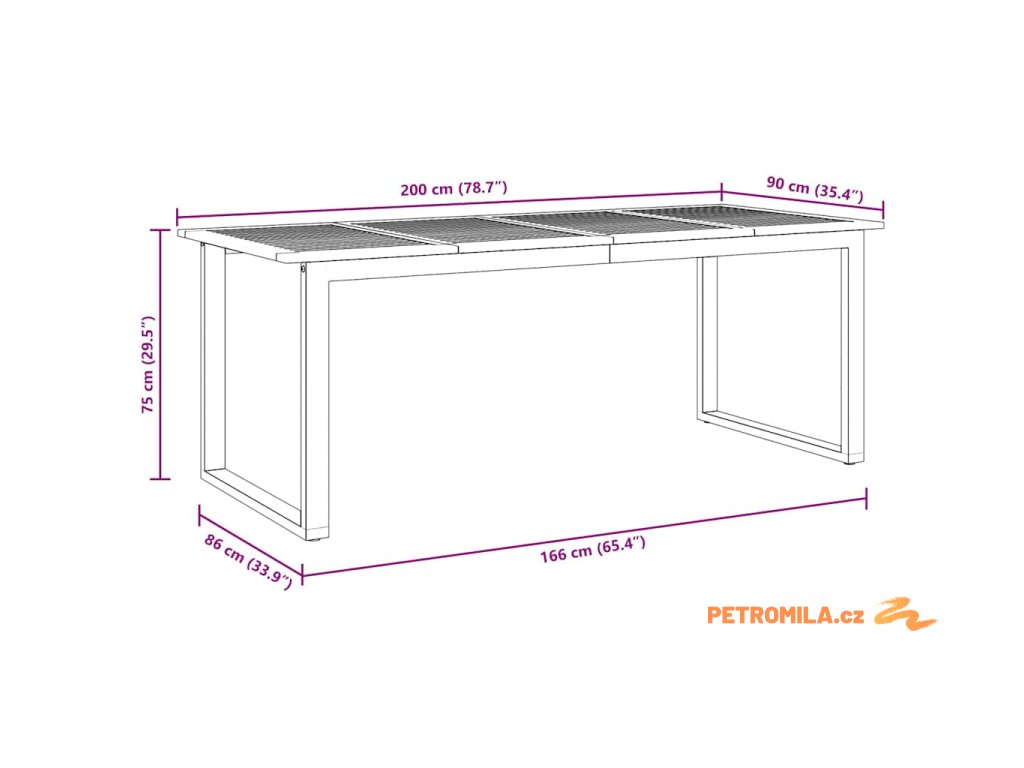 - Celkové rozměry: 200 x 90 x 75 cm (D x Š x V)