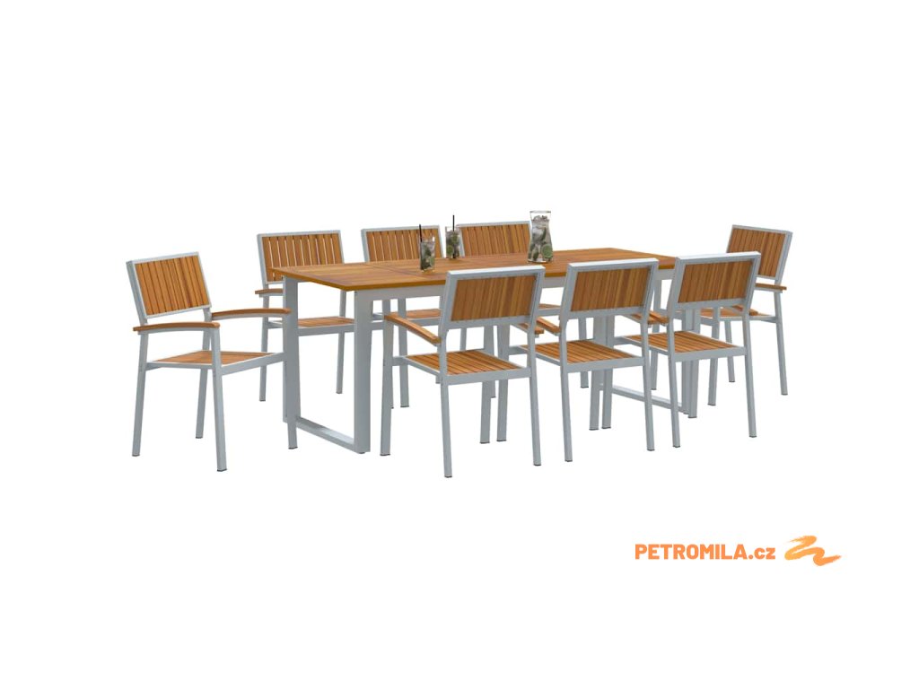 - Součásti: S pevným masivním akáciovým dřevem na opěrkách je tahle souprava zaměřená na komfort a odolnost. Ocelové nohy ji drží stabilní a bez problémů zvládá časté používání. Povrch, sezení a rám z masivního akáciového dřeva vytvářejí hezký a stylový vzhled.
