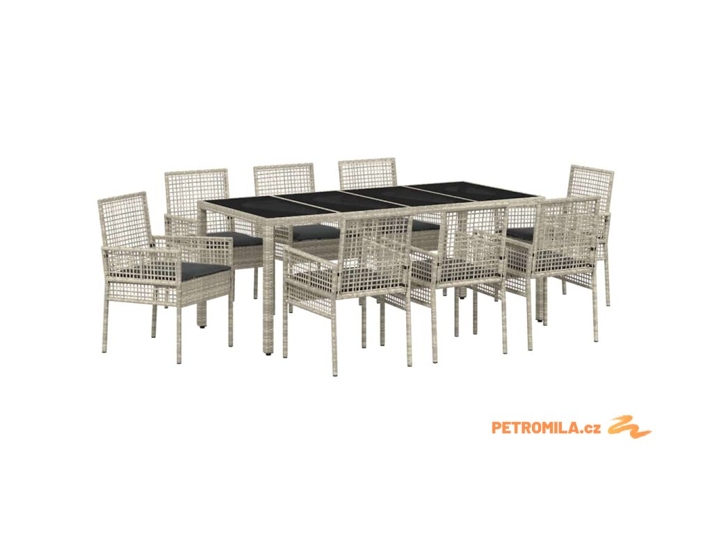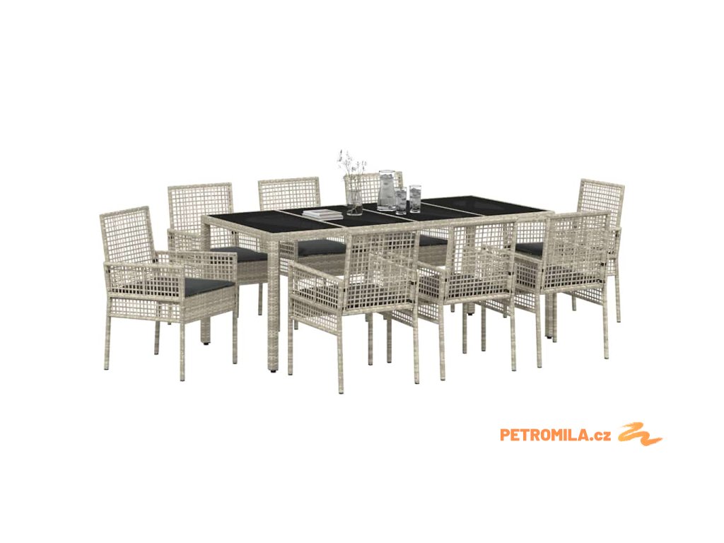 Zahradní jídelní souprava 9 pcs Světle šedá Poly ratan
