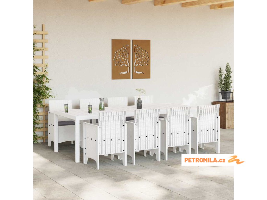 - Univerzální venkovní využití Perfektní pro zahrady a terasy, tento set se skvěle přizpůsobí různým venkovním kontextům. Jeho elegantní design vylepšuje jakýkoli prostor, což ho činí vhodným pro stolování, socializaci a oslavu výjimečných příležitostí. Bez problémů přecházející od běžného denního jídla po útulné večerní sezení, slouží jako středobod jakéhokoli shromáždění.