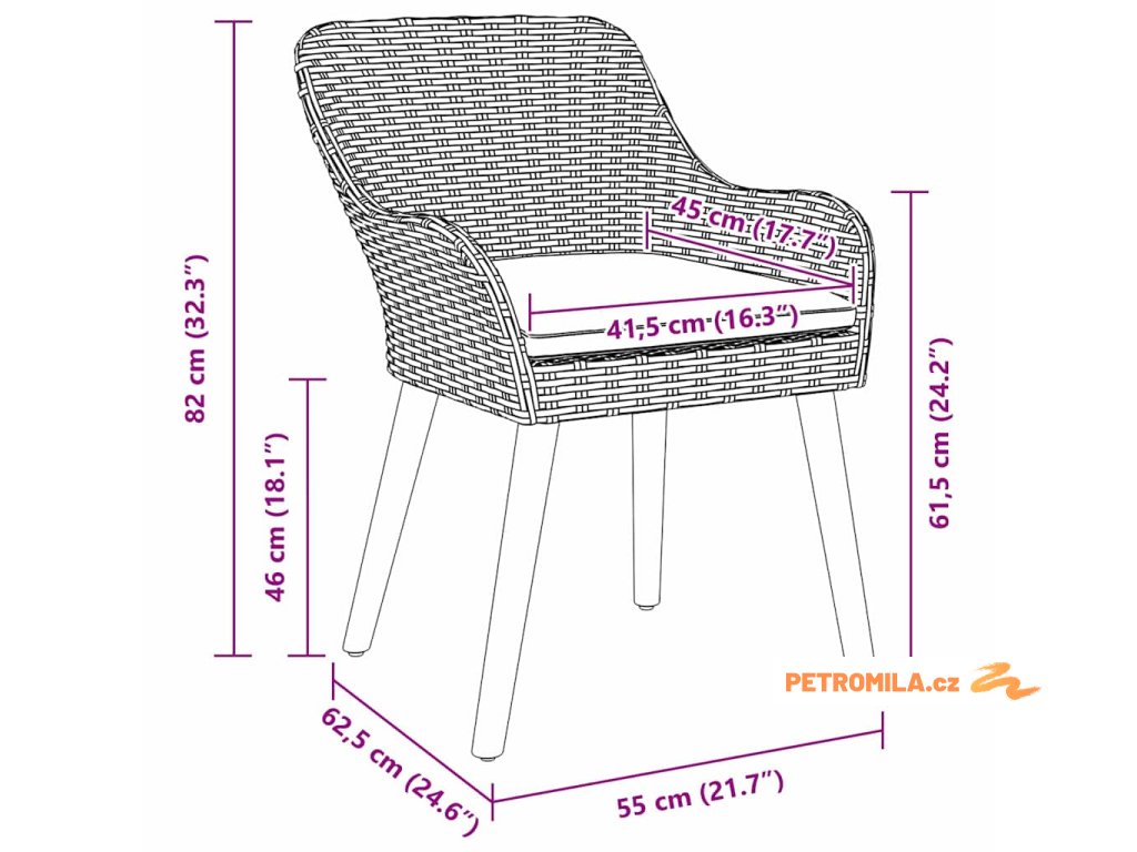 - 8 x jídelní židle: 62,5 x 55 x 82 cm (D x Š x V)
