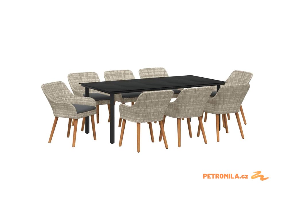 Zahradní jídelní souprava 9 pcs Světle šedá polyratan