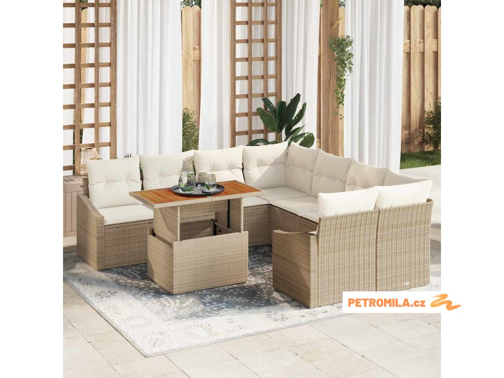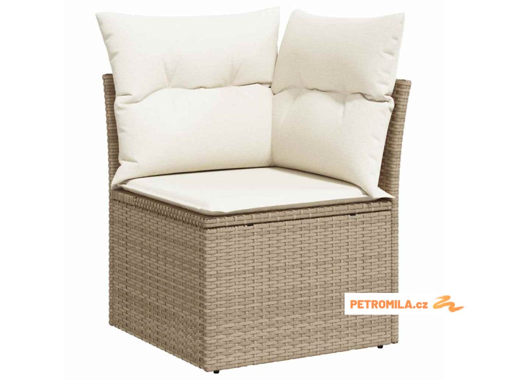 - Úložná funkčnost: Pečlivě navrženo s integrovanými úložnými prostory v područkách, rohových a středových sedadlech, nabízí praktické řešení pro organizaci polštářů a dalších nezbytností. Tato funkce přidává pohodlí, což činí ideální pro uklizené venkovní prostory.