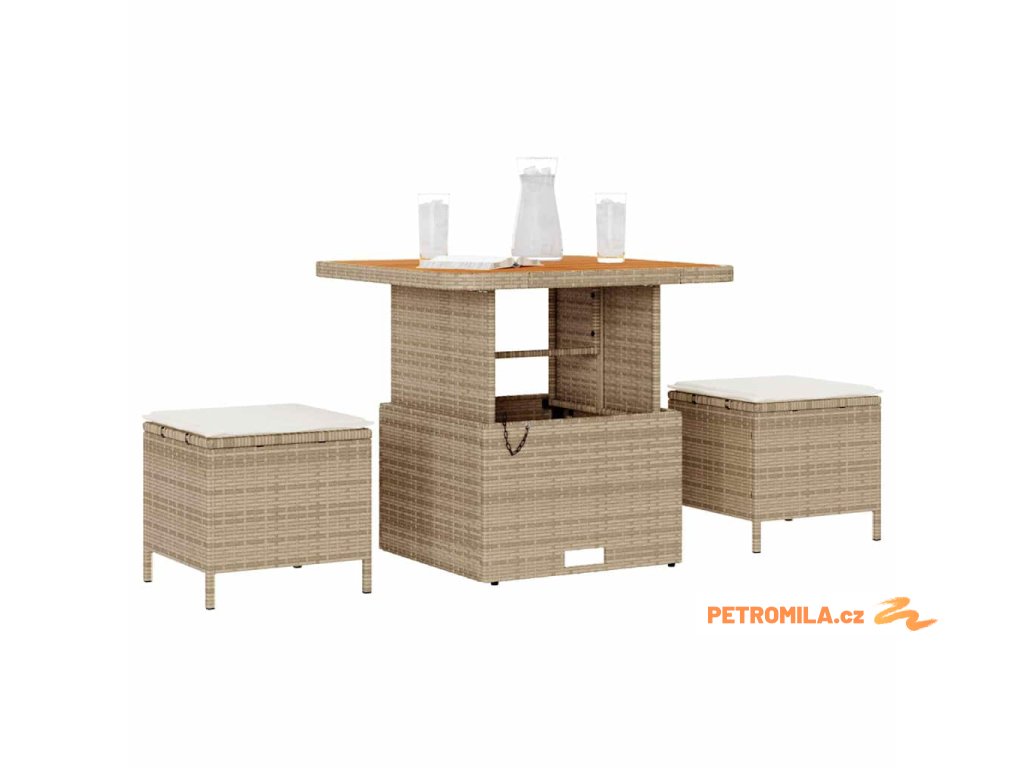 Zahradní jídelní souprava Béžová Poly ratan