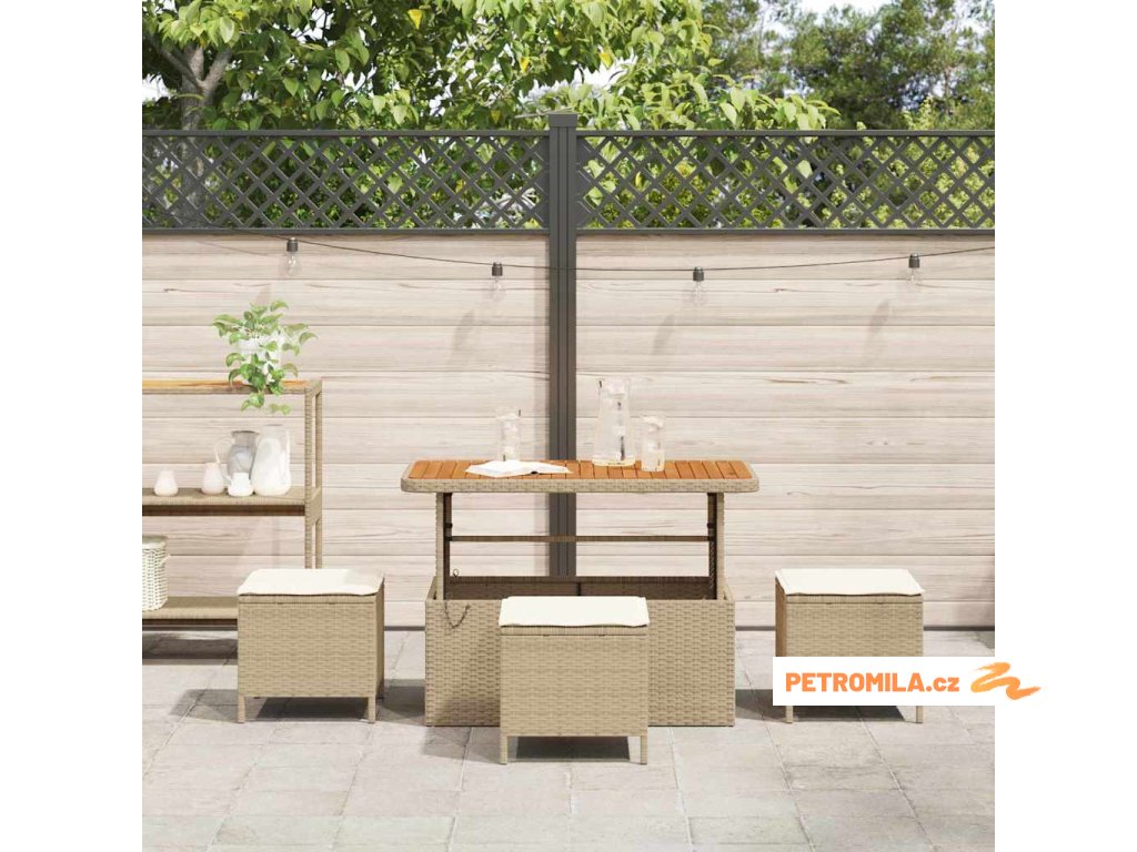 - Velkorysé sezení: S jeho stylovým moderním vzhledem a dostatkem místa k sezení se tenhle set postará o setkání, oslavy nebo rodinné večeře, takže je to dokonalá volba pro všechny druhy venkovního stolování.