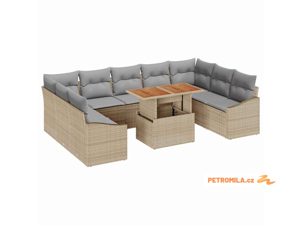 Zahradní jídelní souprava s polštářem 10 pcs Beige a šedá