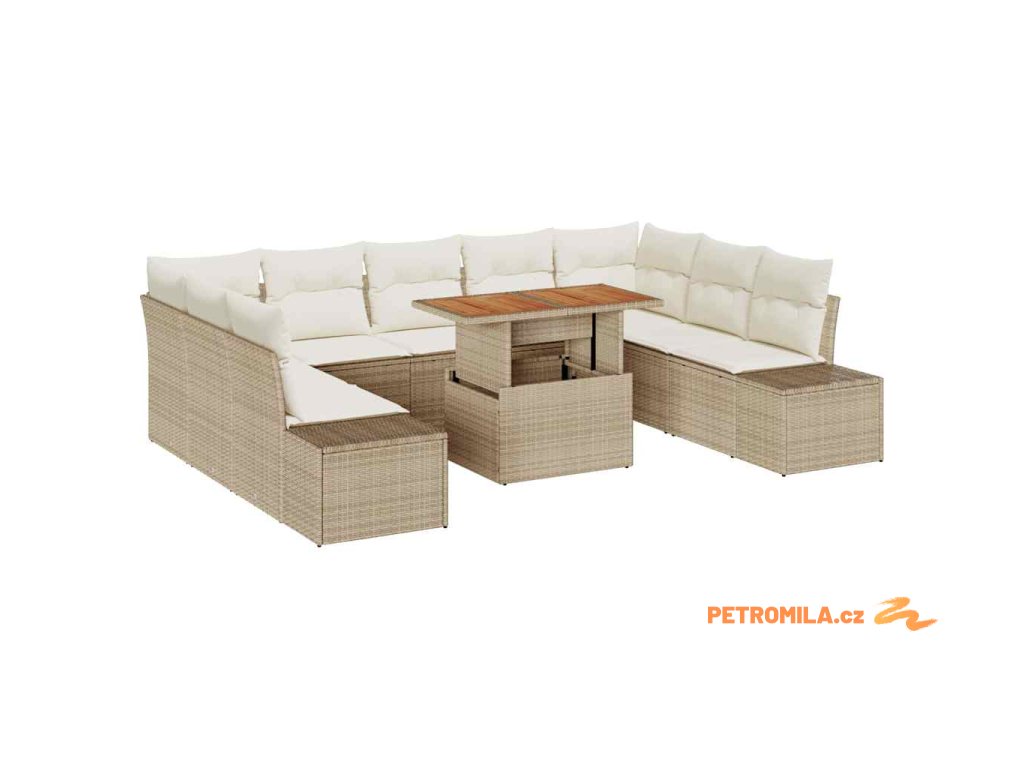 Zahradní jídelní souprava s polštářem 10 pcs Béžová a krémová