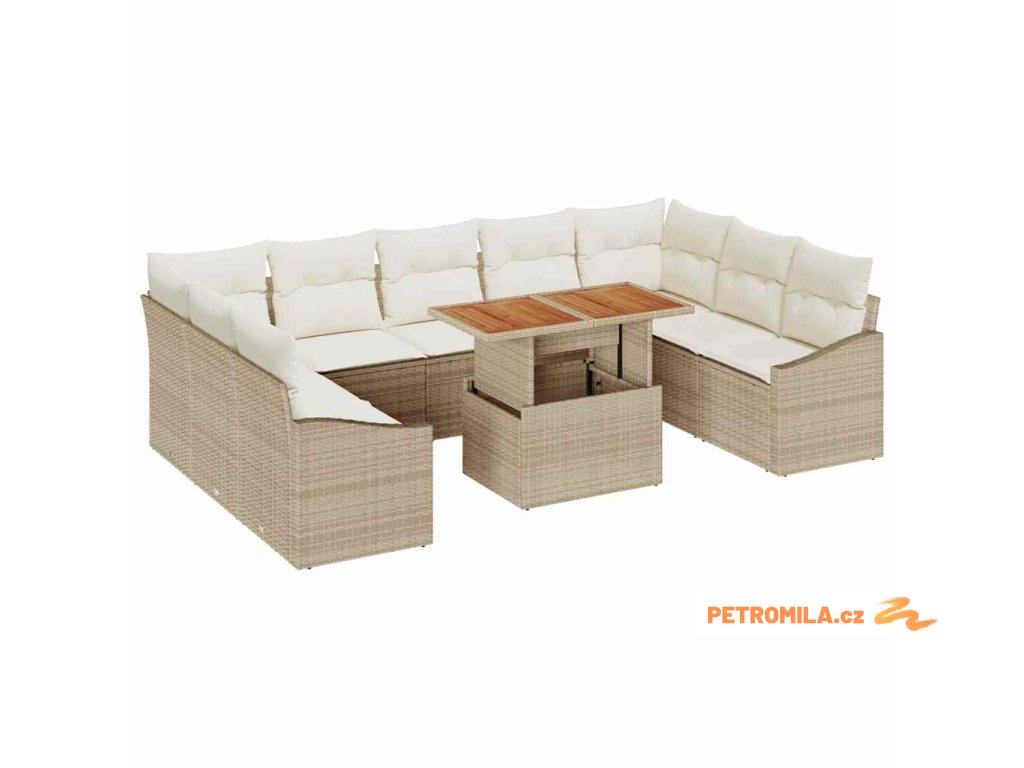 Zahradní jídelní souprava s polštářem 10 pcs Béžová a krémová