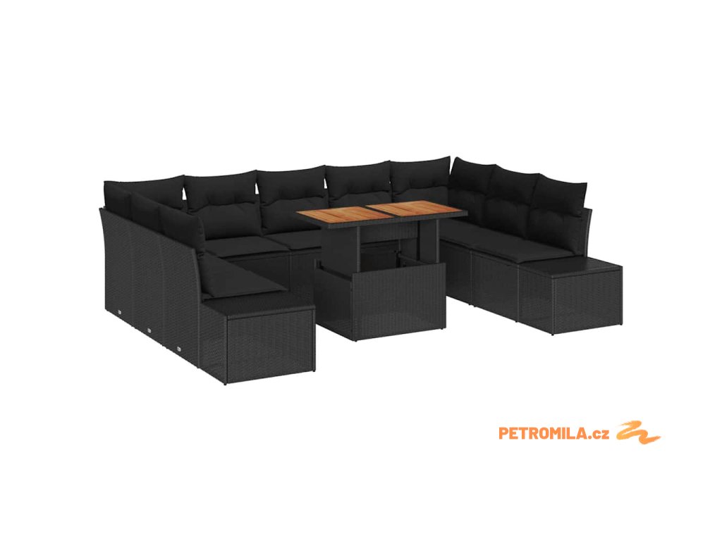 Zahradní jídelní souprava s polštářem 10 pcs Černá a hnědá