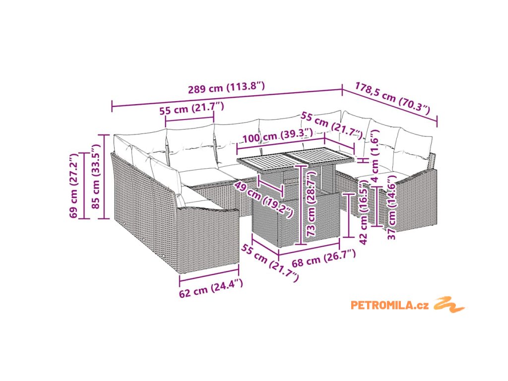 - Zahrnuté prvky: V soupravě jsou pečlivě zahrnuty arm sofa a rohové sedačky s úložnou funkcí. Tyto kusy nabízejí pohodlné prostory pro uložení polštářů, ubrusů a dalších nezbytností, což zajišťuje, že zůstanou suché a chráněné, když nejsou používány. Díky tomu souprava udržuje čistý vzhled, což přispívá k její všestrannosti.